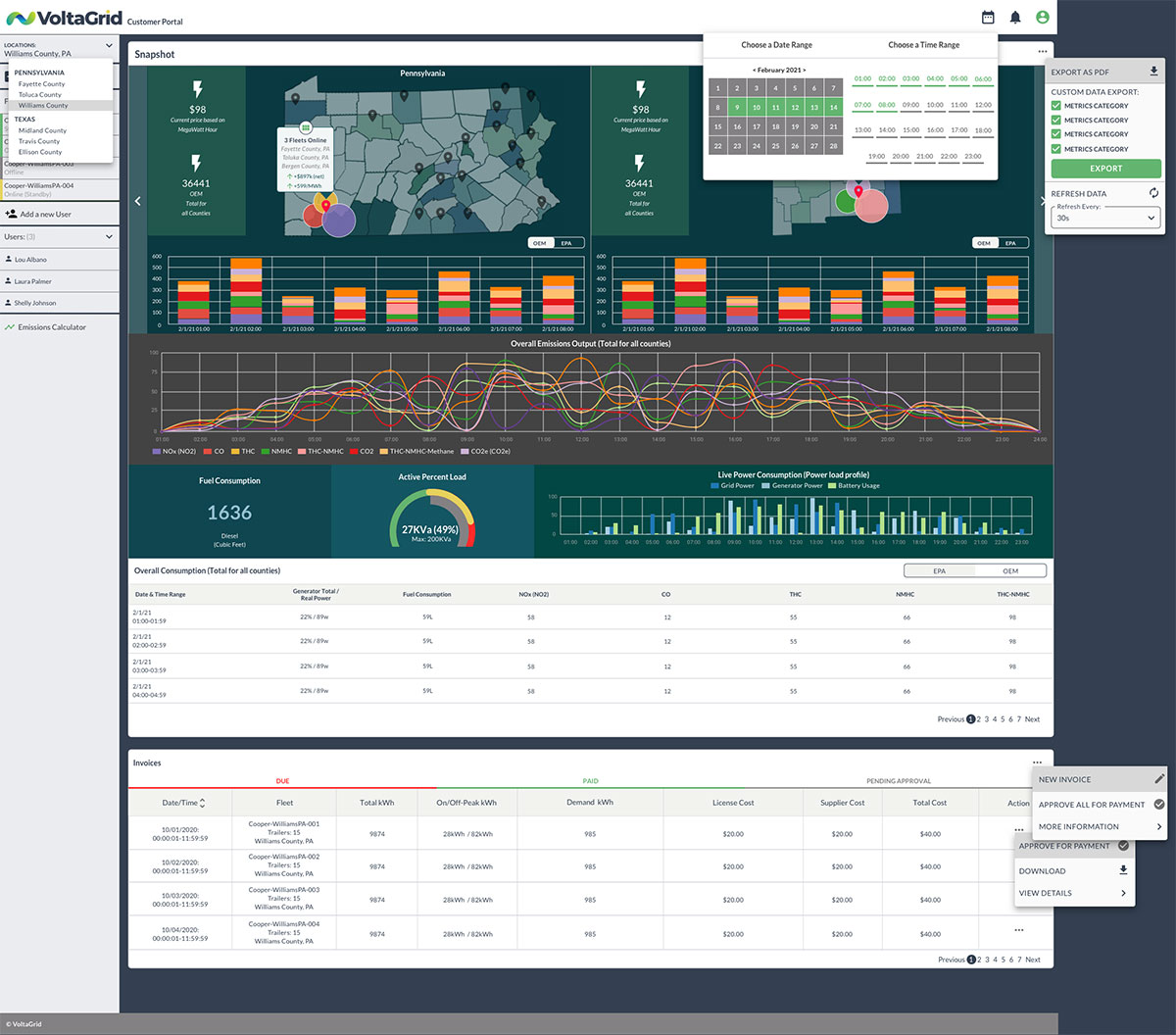 At VoltaGrid, we’re leveraging the cloud, machine learning, and artificial intelligence to deliver near-real-time operations data to our clients through our Access Innovation Portal. Today, you can access this data from any web-capable device; soon, we’ll roll out mobile applications to extend portal access across iOS and Android platforms.